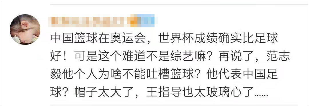 談到《吐槽大會》上的嘉賓們,尤其是前中國國腳范志毅對中國男籃的吐槽,王仕鵬的心中着實有些不忿。