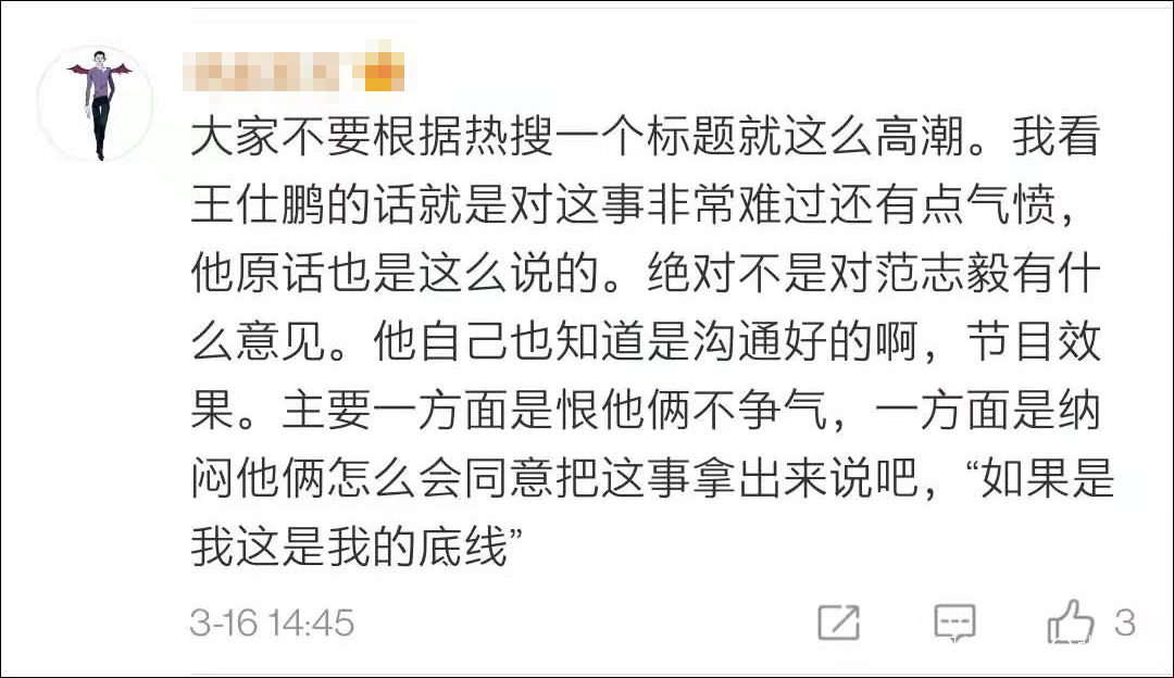 “大家不要根據熱搜一個標題就這麼生氣……王仕鵬絕對不是對范志毅有什麼意見。”