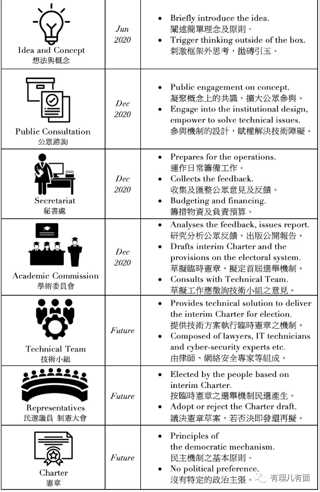 目前,這個“香港影子議會”已建立一個所謂官方網頁,並附上了一份17頁的諮詢文件,不知從哪抄了一份有關選舉議員的類似“指引”。