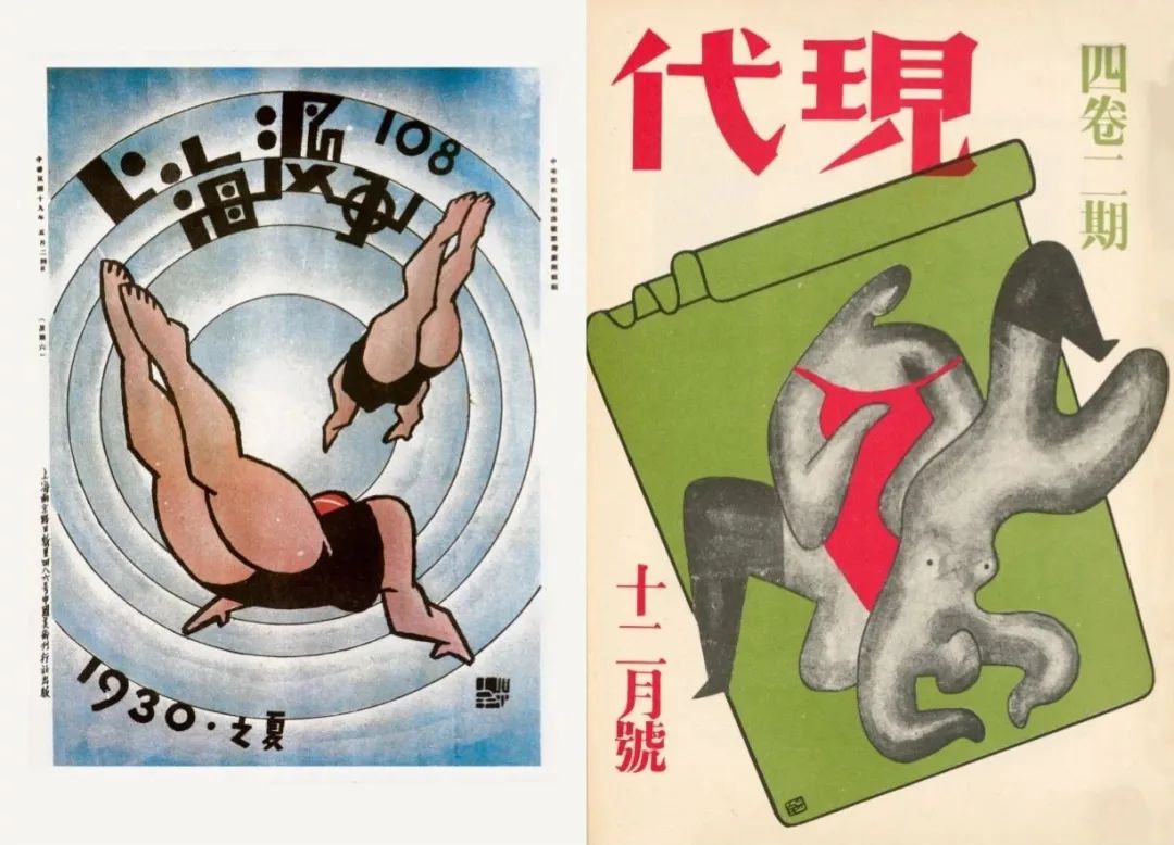 ▲張光宇設計的雜誌封面(左:1930年5月《上海漫畫》第108期,周瘦娟主編;右:1933年12月《現代》第4卷2期,施蟄存主編)