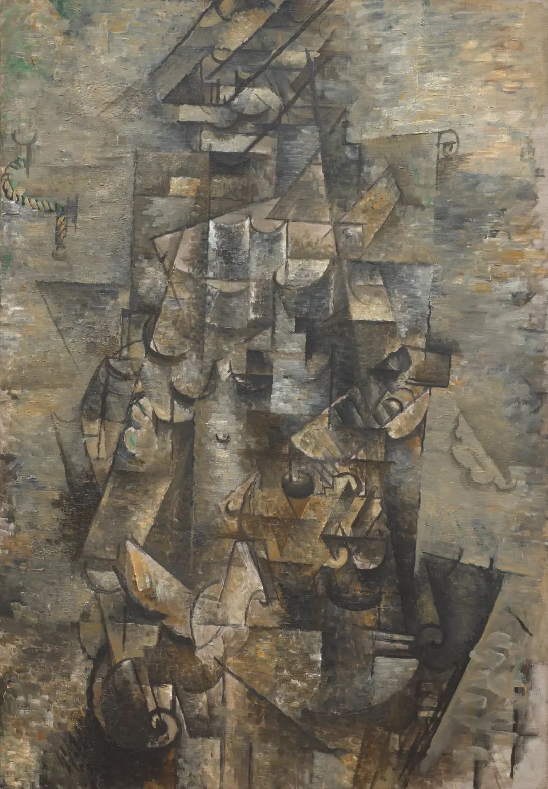 這幅畫,如果沒有標題我們根本不往吉他這兒想,因為標題拼命找具象,噢這兒有一點吧,不要,就是把一個形體跟環境的關係統統解構、解開。