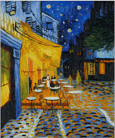 第一次工業革命的標誌是蒸汽機。第二次工業革命是什麼?電。一開燈啪亮了。在梵高的時代,梵高很有意思,大家沒有注意到他特別愛畫電燈。屋子裏有一個電燈,咖啡館外面有一個座上有一個電燈,那是時髦的東西。梵高自己又有幻覺,他覺得“燈泡”在他心裏跟太陽差不多。他畫燈泡的方法用來畫太陽,用畫太陽的方法也畫燈泡。