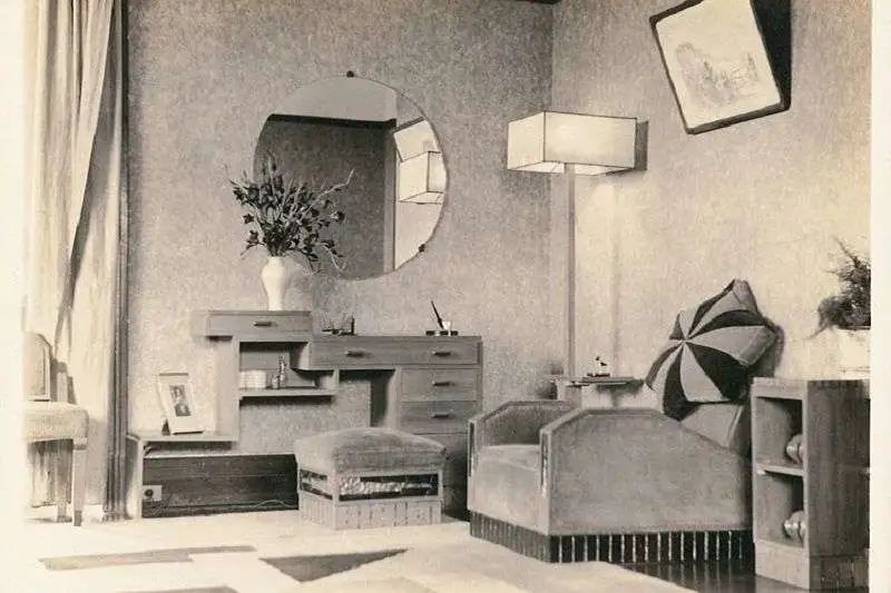 這些都是Art Deco的設計,張愛玲自己設計的傢俱同樣Art Deco風格。大圓鏡子造價高,做這麼大一個鏡子邊角是不太有用,裁不好就全碎了,材料錢、工錢全算在裏面。不怕,就是要一個圓的,這就是Art Deco的消費心理。