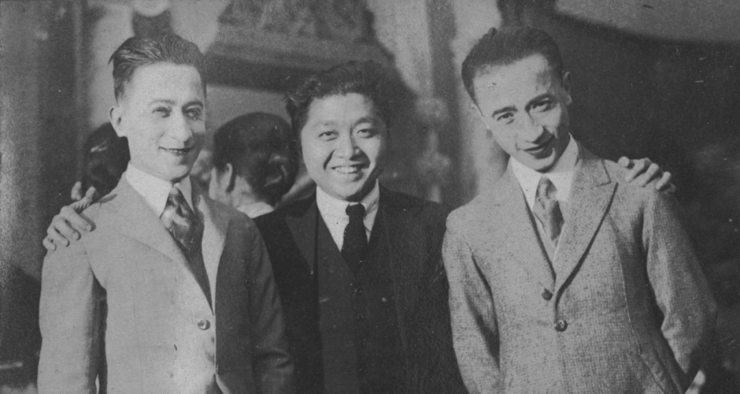 ▲1925年,張光宇與萬籟鳴、萬古蟾兄弟的合影