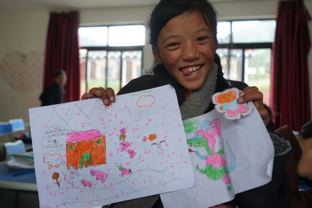 孩子展示自己的畫作(圖源:洛桑和袞袞)