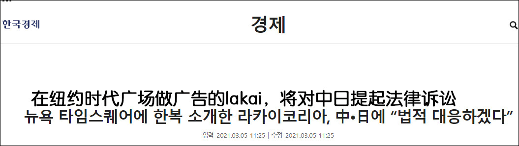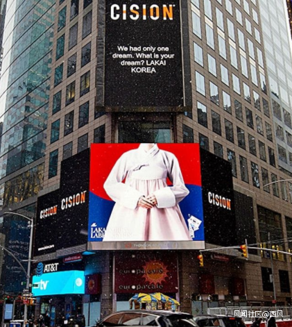 Lakai主營各種滑板鞋以及運動服飾,據韓聯社今天(17日)報道,本月初,韓國三一節小長假期間,Lakai韓國在紐約時代廣場做了個女孩穿着韓服的廣告。
