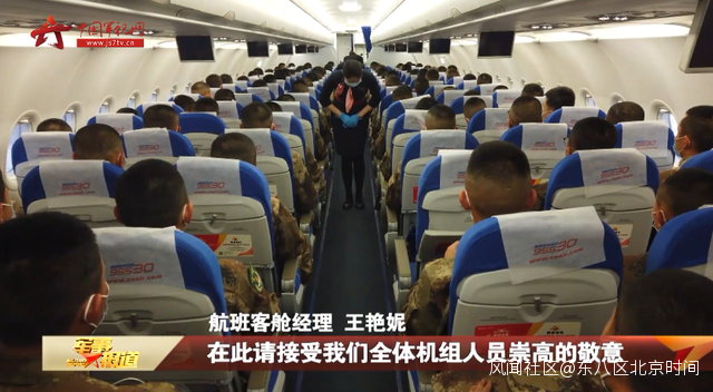 得知乘坐航班的官兵即將奔赴邊防一線,機組人員向大家表示敬意。