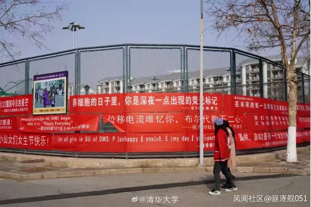 比如下圖這些是清華男生們向女生祝賀“女生節”的條幅。