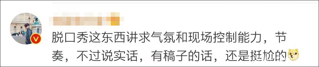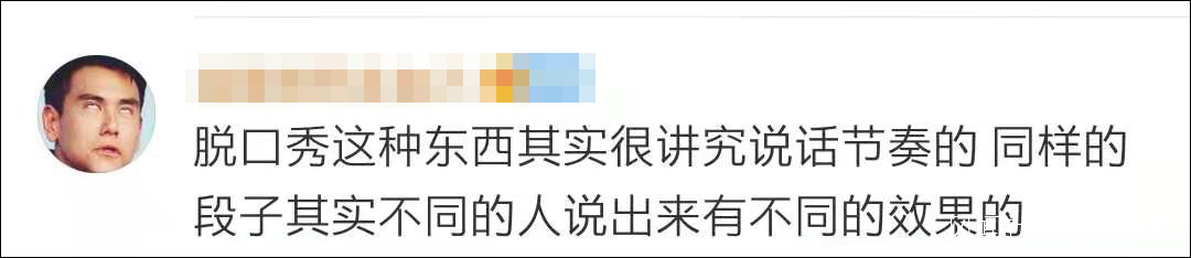 還有網友表示:“脱口秀很講究説話節奏和語氣的,同樣的段子其實不同的人説出來,會有不同的效果。”