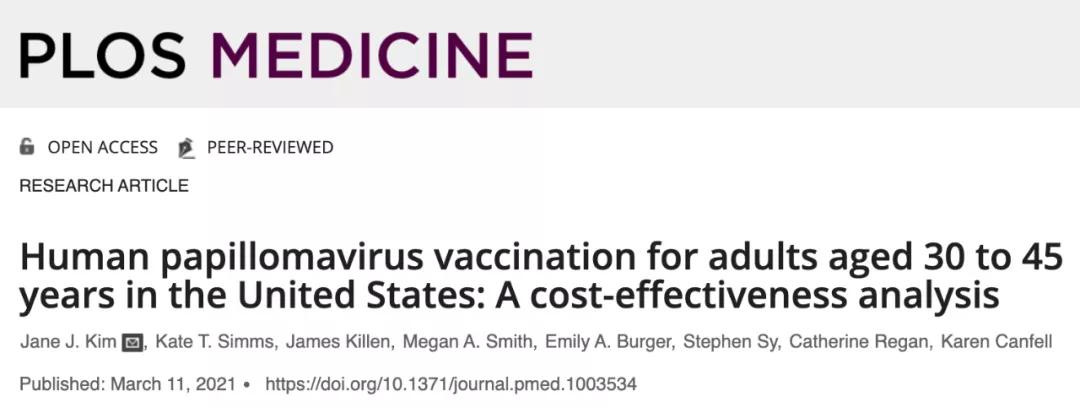 1、Jane J. Kim et al. Human papillomavirus vaccination for adults aged 30 to 45 years in the United States: A cost-effectiveness analysis. PLoS Medicine, 2021, doi:10.1371/journal.pmed.1003534.