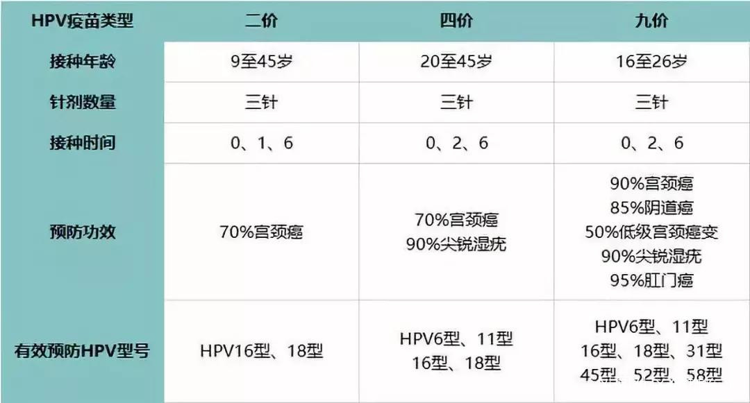 根據HPV疫苗的接種和管理及結合我國國情,目前二價、四價、九價HPV疫苗的適宜接種年齡、接種時間、可預防的疾病總結如下: