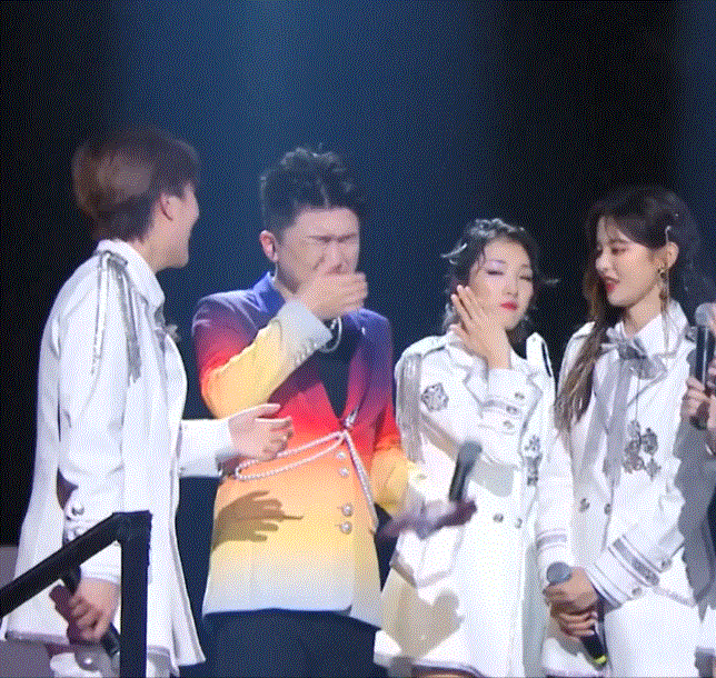 △ 火箭少女解散演唱會成員楊超越安慰失聲痛哭的主持人張大大