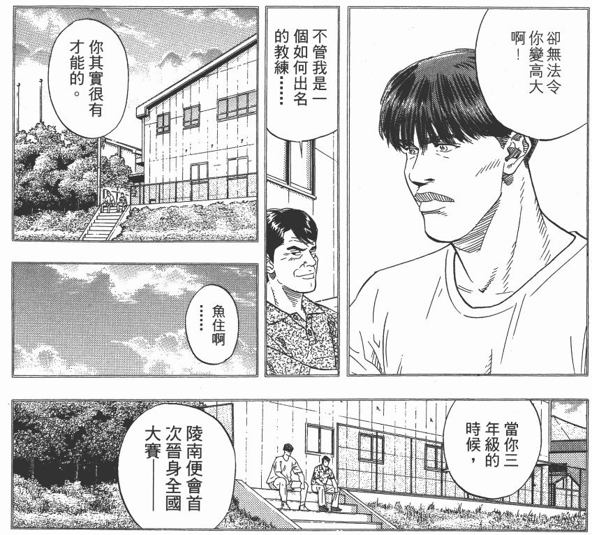 但是,田岡也許體會不到魚住容易受傷的心——田岡是個好人,也並非不懂馭人之術,只不過,他總是要在傷了對方自尊之後,才意識到他們可能也是要臉面的。