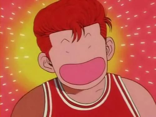 當魚住明白身高才是鐵打不動的籃球第一天賦時,人生豁然了。看看下面這個表情,這個快要繃不住的竊喜笑容,要比微笑、大笑、狂笑都能反映出魚住此刻內心的激動。