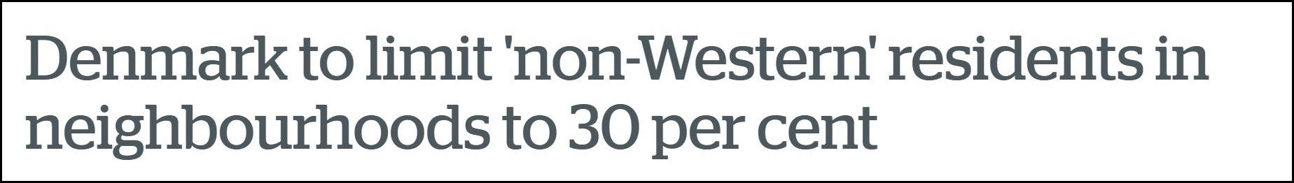 丹麥內政部提出的議案認為,社區中“非西方血統”居民的數量最多不得超過30%,丹麥政府將利用10年時間來達成這個目標。