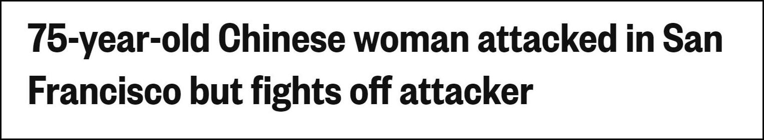 【文/觀察者網 陳聰】針對亞裔的種族主義事件愈發頻繁。當地時間17日,就有一名75歲的亞裔老婦人在美國舊金山市場街遭到白人男子無端襲擊,她操起木棍奮起反抗,反將對方打傷住院。