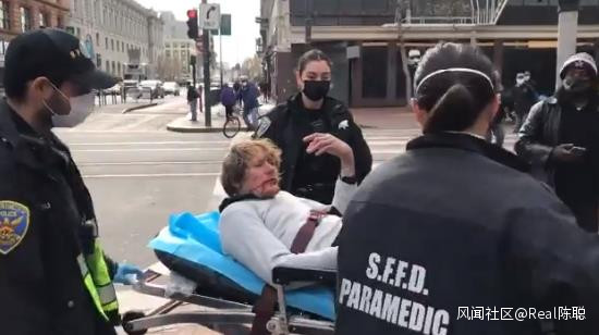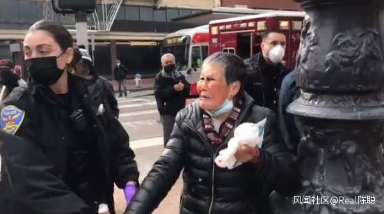 KPIX記者恰好路過,拍下了警方到場處置的過程:白人男子被拷在擔架上,臉上血跡斑斑;老婦人則用冰袋敷臉,似乎是眼睛和臉部都受了傷。有女員警試圖安撫老婦人的情緒,老婦人用中文質問擔架上的白人男子:“你為什麼要打我?”