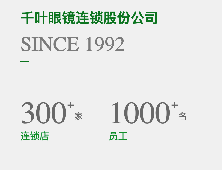 目前,千葉眼鏡已擁有300多家連鎖店,1000多名員工,銷售網絡遍及重慶、北京、四川、貴州、湖南、湖北、山東、甘肅、黑龍江、吉林、內蒙古等地。