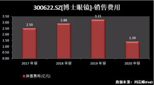 一個值得注意的現象是,與一般行業相比,眼鏡行業對於門店選址的要求較高,單位面積租金自然低不了,加之租賃門店數量多,導致銷售費用居高不下。