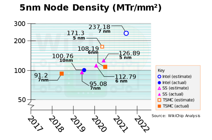 各代工廠工藝節點晶體管密度 | 圖源:Wikichip