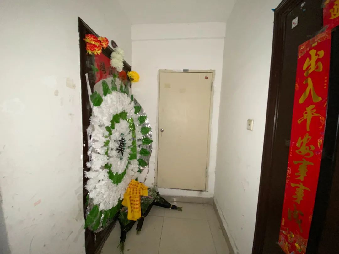 3月17日,記者到達楊某燕杜某海家中,發現大門已被封條封住,並放上了花圈火紙和花束