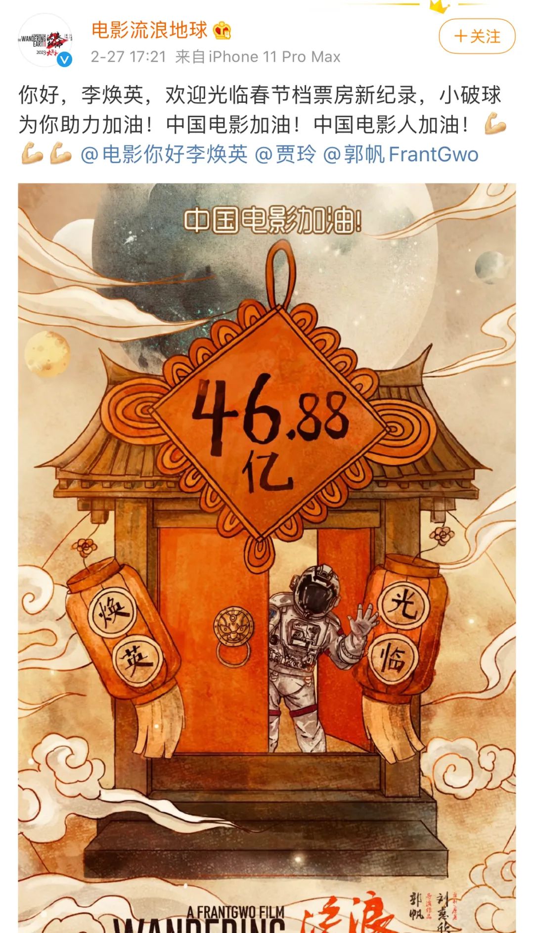 “中國電影加油!中國電影人加油!”
