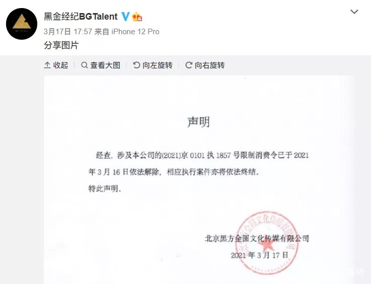 其間一個小反轉是,此條限制消費令在3月16日解除。但這次的事件卻尚未停止喧囂,黑金娛樂CEO尚雯婕連上兩次熱搜,黑金經紀從2018年就開始的糾紛也再次被呈到公眾面前。