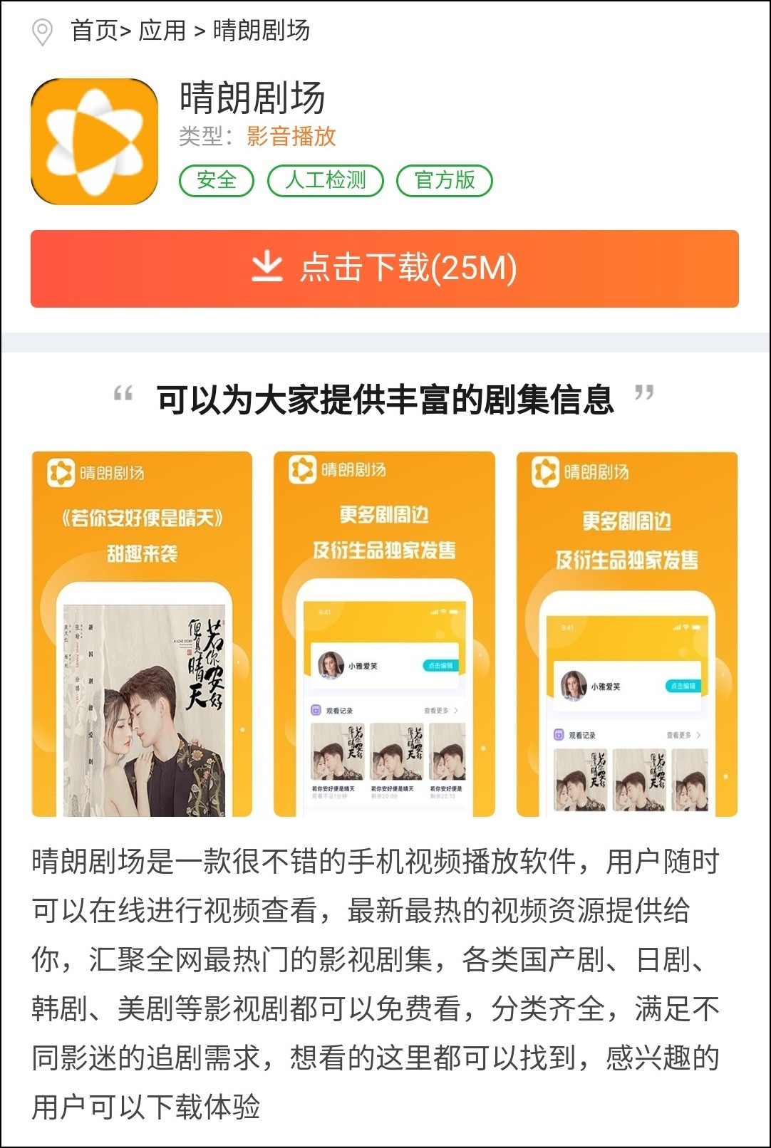據瞭解,晴朗劇場是出品方東陽晴朗影視文化有限公司推出的APP。