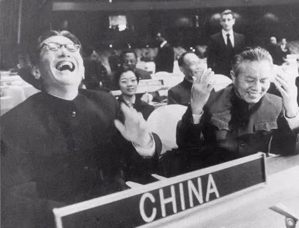 1971年,中華人民共和國恢復在聯合國的一切合法權利。圖為時任外交部副部長喬冠華和首任中華人民共和國常駐聯合國代表黃華。