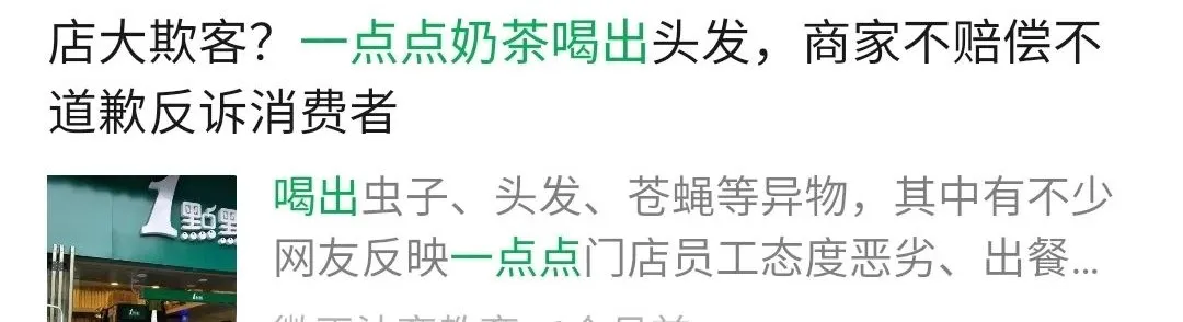 2017年11月,上海一名消費者從1點點中喝出一隻蟑螂。