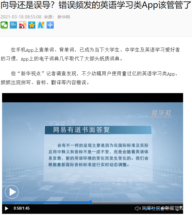 “新華視點”記者調查發現,網易有道詞典、滬江小D詞典、百詞斬等英語學習類App,頻頻出現拼寫、音標、翻譯等內容錯誤。