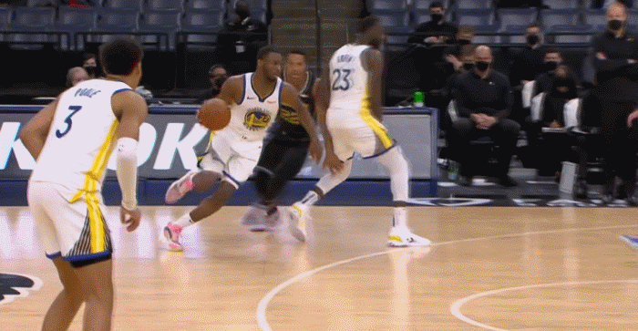 由於庫裏尾巴骨受傷休戰,維金斯和喬丹·普爾受命主攻。和庫裏生日那晚一樣,維金斯從一開始就顯示了強大的攻擊慾望,上半場拿了27分,距離“生日賀禮”賽季最高只差了1分。到下半場,灰熊開始讓他“享受”久違了的夾擊待遇,但他仍然拿下了13分。