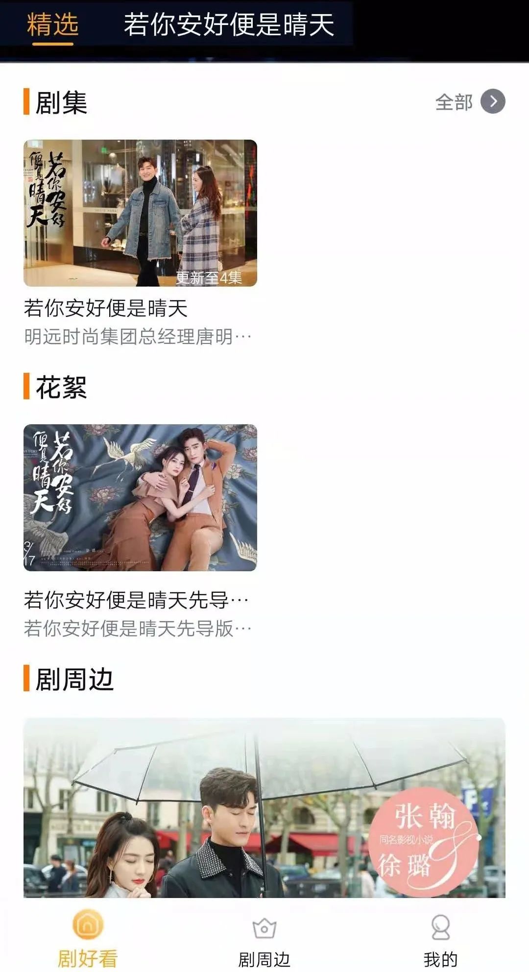 相較於視頻網站會員超前點播的觀劇模式,張翰和徐璐主演的《若你安好便是晴天》的播出方式更為新穎。3月17日,《若你安好便是晴天》官博發公告稱,因無法與愛優騰三家視頻平台達成一致,該劇將獨家在晴朗劇場上線,用户需要下載、註冊並付費才能觀看劇集。