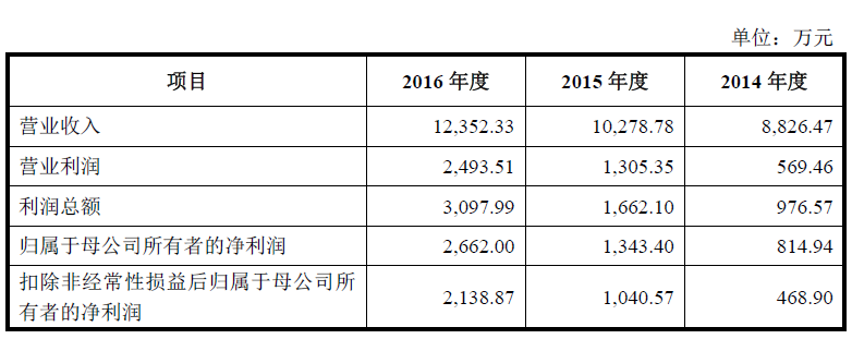 不甘心始終待在新三板的袁建華將公司的上市目標定在了創業板。與此同時,為了能夠順利上市,袁建華還一直未增加銷售、管理、研發等方面的費用支出,以降低成本,公司業績開始逐年增加,2014年至2016年公司淨利潤分別為814.94萬元、1343.4萬元、2662.01萬元。