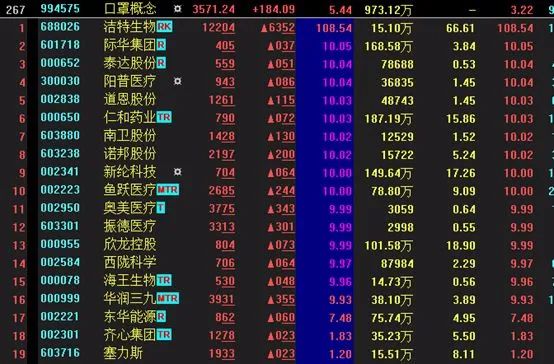 上市當天,潔特生物(688026)董事長袁建華曾“吹牛”,口罩業務作為公司主營業務之一,已下達1000萬個口罩緊急生產任務,並已拿到廣州市相關部門的200萬個口罩訂單。於是,股價大漲223.59%,報收53.36元。