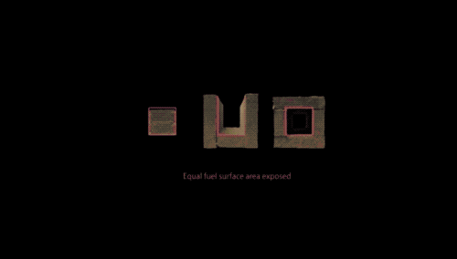 而斜坡的幾何形態對溝槽效應也有重要的作用。大家可以看一下普通的木條、凹形木管和回形木管的溝槽效應對比,凹形木管和回形木管的燃燒速度比木條快得多——