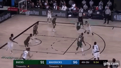 一開始看着還挺成功,兩邊僵持。上半場到最後2分鐘了,盧卡得了21分,才1個助攻。達拉斯只投進了6個三分球。