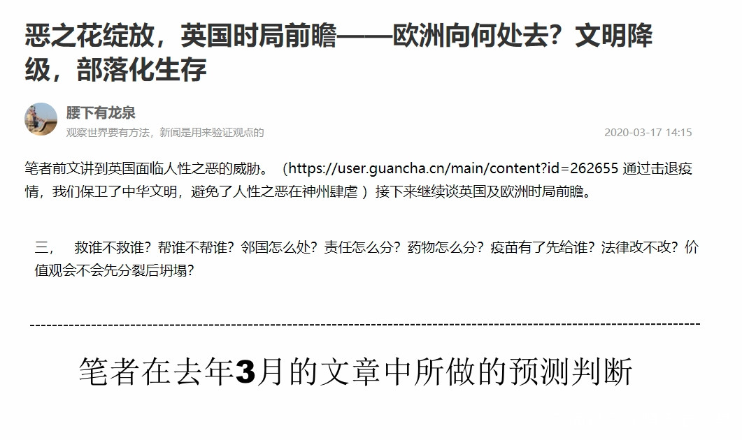 第三, 疫情對各個國家的疫情治理水平提出了客觀的不可迴避的更高要求。各個國家或者實體,不可迴避,迴避等於在等死。因此各國統治者正在做多或裝作做多的路上,基本沒有敢迴避的。有的國家和地區選擇裝作做多,早晚會被虐。有的沒有力量,也會被虐。不容迴避,這是一個基本點。各個實體不但必須要做多,還必須不斷提高抗擊疫情的治理水平,這就構成了客觀矛盾。圍繞治理疫情,一國內部政治就會分化,就不得不變,不變的當局就會下課,這就是勢。如果一國沒有力量,當局就得向外去依附,拿什麼依附呢?不展開。各個實體因為無法依附美國,就出現了結構性選擇難題。總結,矛盾變化就此產生,內部趨勢產生進而產生國際間外部變化。以鄰為壑部落化。重複,各個實體必須應對疫情,否則經濟無法穩定,政局不穩,這是各個實體內部的大勢。