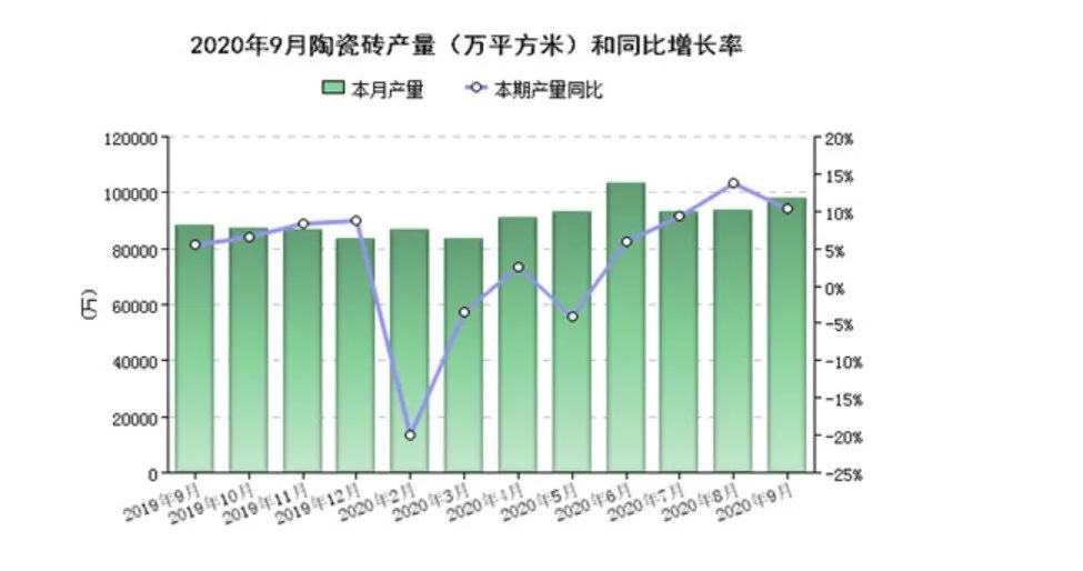 國家統計局數據顯示,2020年前11個月全國陶瓷磚累計產量94.30億㎡,比2019年同月增長2.18%。預計2020年全年全國陶瓷磚累計產量將突破100億㎡。此外,2020年1-11月,規模以上建築陶瓷工業主營業務收入累計2817.48億元,比上年同期增長1.6%。