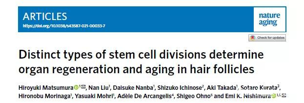 最新發表在《自然-衰老》上,標題為“Distinct types of stem cell divisions determine organ regeneration and aging in hair follicles”的一篇研究發現,在衰老過程中,毛囊幹細胞由於採用非典型細胞分裂程序而喪失再生能力。