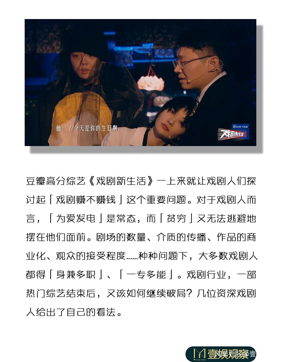 戲劇人們通過《戲劇新生活》發出“沒錢”的呼喊,戲劇行業現狀才被放置聚光燈下被大眾看見,但這檔綜藝的意義遠不止於此。