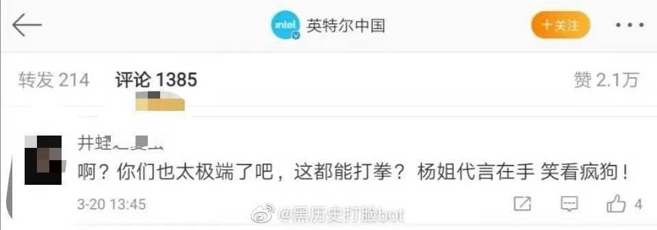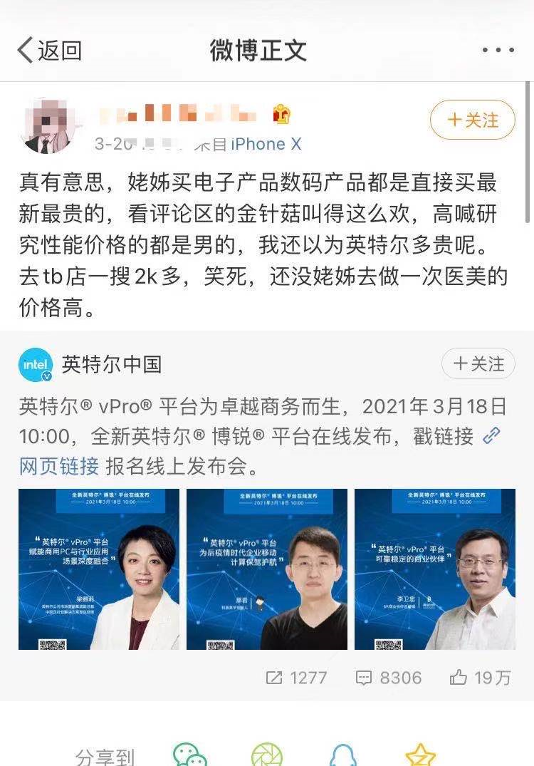 這更是惹惱了微博上的女孩們,於是她們也開始攻擊英特爾: