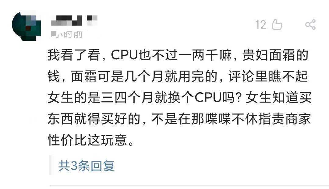 並且認為,罵英特爾的xdz(小吊子)根本買不起英特爾,不是目標用户:
