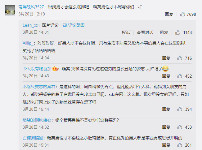 中間夾雜着各種高強度對噴、對線、對罵,網絡男女共同度過了一個有意義的週末。