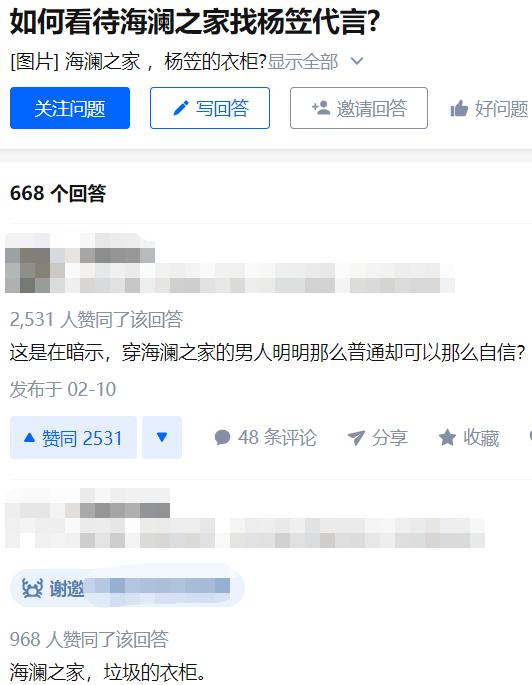 後來楊笠代言海瀾之家,雖然也有很多人不滿,但畢竟擁有海瀾之家衣服的男性是少數,所以也沒引起這麼大火花。