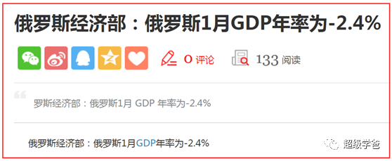 2020年的疫情,讓俄羅斯的GDP再遭重創,GDP下降了3.1%;但是形勢依然不容樂觀,因為2021年1月下降了2.4%(年化),2月又下降了2.8%。