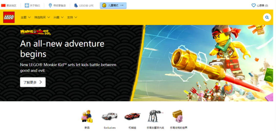 為了迎合中國市場,樂高也做了許多本土化的設計。2020年樂高®蒙基兒童**(中文名“悟空小俠”)推出,作為中國首個主題玩具,設計靈感來自中國的傳説西遊記,蒙基(Monkie)**即孫悟空的意思。樂高對其賦予了很高的期待值,認為這將是亞太地區未來最暢銷的系列玩具。