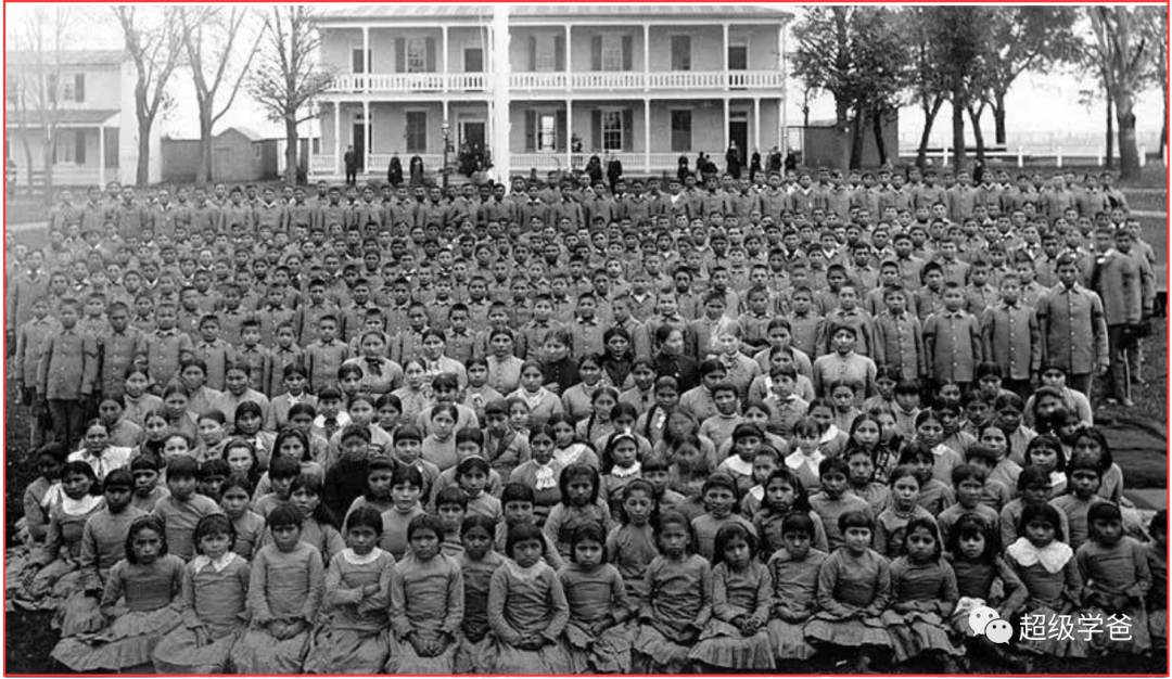 孩子們被迫穿上黑白條紋的囚服,禁止使用本民族語言、禁止穿着本民族服飾、禁止保留印第安式髮型、禁止過印第安節日。