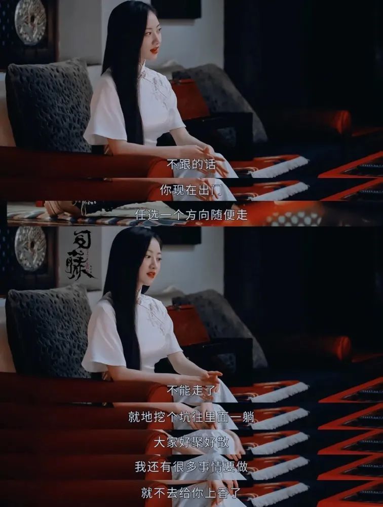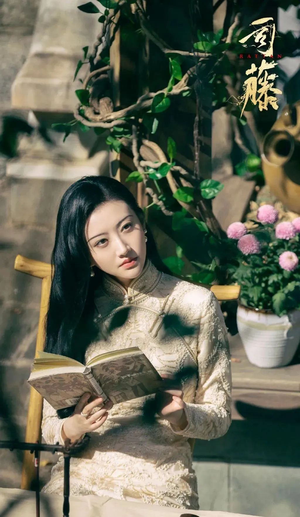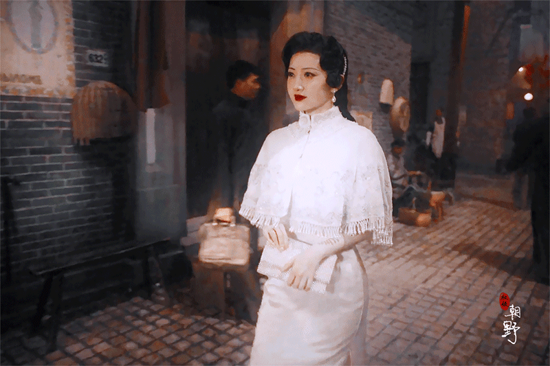 女主角司藤初亮相時,身着一襲精緻的暗紋繡花白旗袍搭配簡單的珍珠首飾。