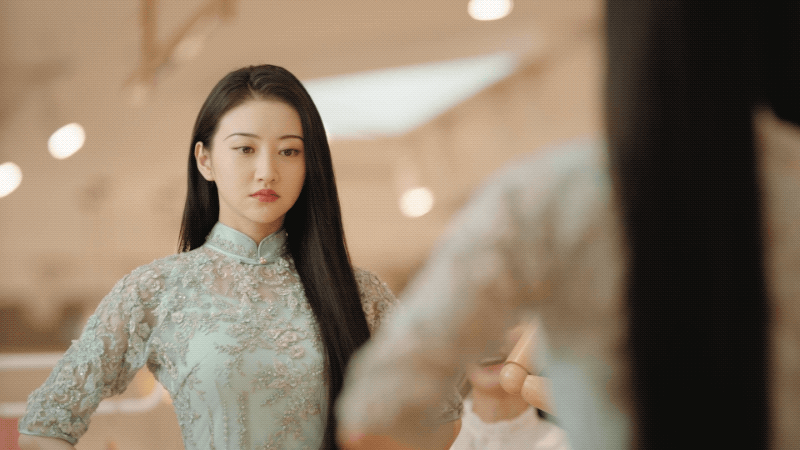 轉頭換了一身素淨白旗袍搭配櫻花粉斗篷後,她又頓時變成了一個我見猶憐、温婉動人的大小姐。